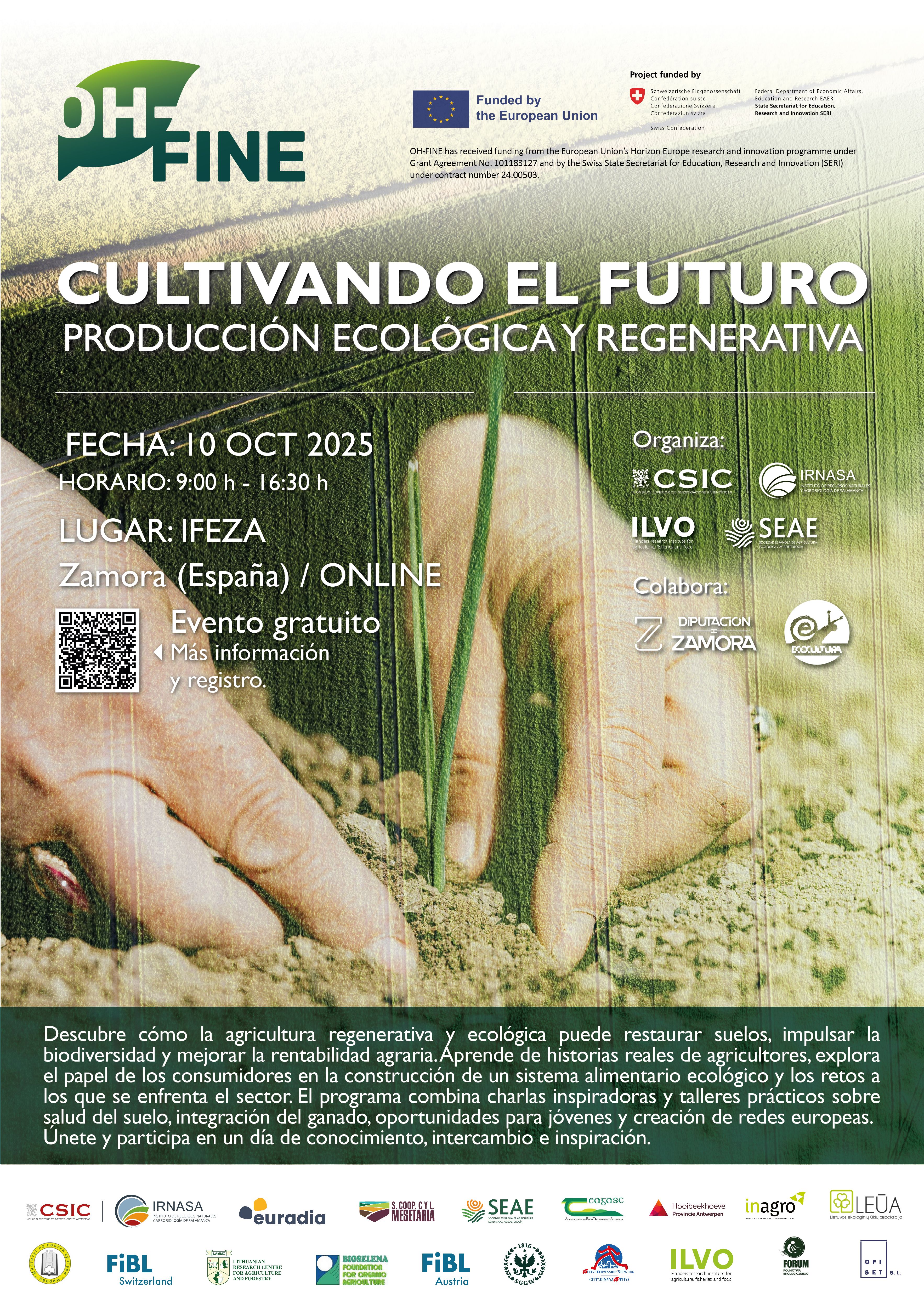 Este evento, abierto a la participación de todo público interesado, forma parte del proyecto OH-FINE (Organic Farming Innovations Network Europe), en el que participan nueve países europeos y que está coordinado por el Instituto de Recursos Naturales y Agrobiología de Salamanca (IRNASA-CSIC). El objetivo de esta iniciativa es dotar a los agricultores europeos, especialmente a pequeños productores, de conocimientos y herramientas que les permitan practicar una agricultura ecológica competitiva, sostenible y adaptada a las demandas del mercado actual.