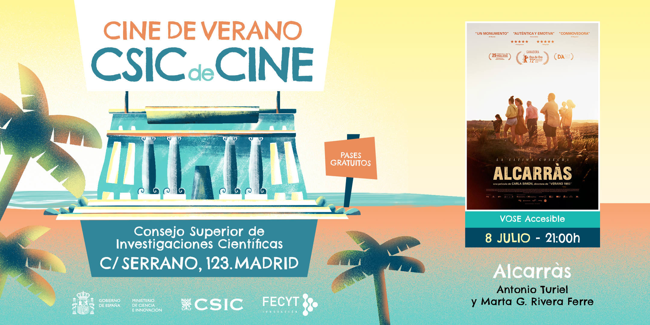 El cine de verano del Consejo Superior de Investigaciones Científicas (CSIC) continúa su programación con esta cinta de Carla Simón, ganadora del Oso de Oro en la Berlinale de este año y éxito en la taquilla nacional. Alcarràs retrata a una familia de campesinos y escribe, a partir de distintos puntos de vista, una crónica sobre la última de sus cosechas. Pero al mismo tiempo pone sobre la mesa cuestiones clave para la sociedad actual, como la generación de energía renovable en detrimento de terrenos agrícolas o el aumento de los precios de los alimentos, entre muchas otras. La lectura científica de estos asuntos llegará de la mano de Antonio Turiel (Instituto de Ciencias del Mar, CSIC) y Marta Rivera Ferre (Instituto de Gestión de la Innovación y del Conocimiento INGENIO, CSIC-UPV), quienes debatirán antes del visionado de la película en el campus central del CSIC en Madrid.