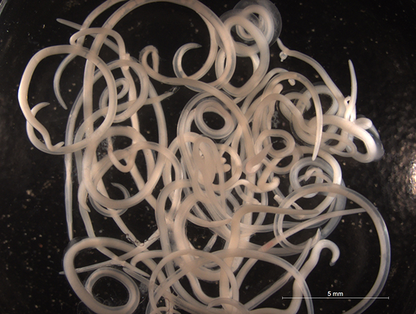 Ejemplares de Anisakis extraídos de una merluza infectada./ Alfonso Navas