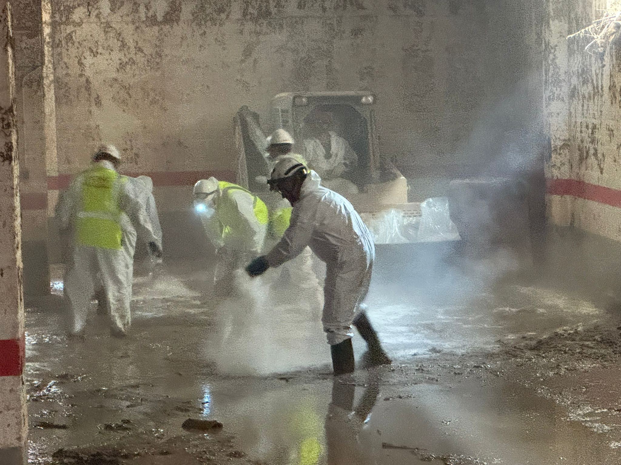 El CSIC emplea con éxito materiales espesantes contra el lodo de los garajes para facilitar su extracción tras la DANA