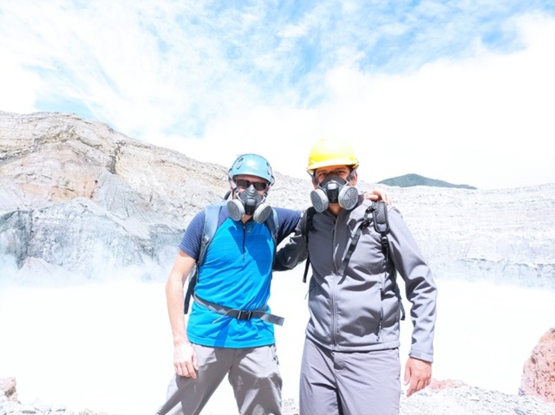 Por otra parte, Nácher y Cubero realizaron el pasado mes de octubre una expedición que recorría diferentes localizaciones de Costa Rica. Una de ellas consistió en subir o, más bien, bajar, al cráter del volcán Poás, ubicado a 2.708 metros de altura, reconocido como una de las principales cumbres del país, considerado uno de los centros eruptivos más importantes de Costa Rica y una de las maravillas naturales del país. Al tratarse de un volcán activo, hay diferentes sustancias en el ambiente que dificultan la respiración, y por ello se debe ir bien protegido con máscaras respiratorias, y también la manipulación de aparatos electrónicos, debido a las condiciones del entorno.