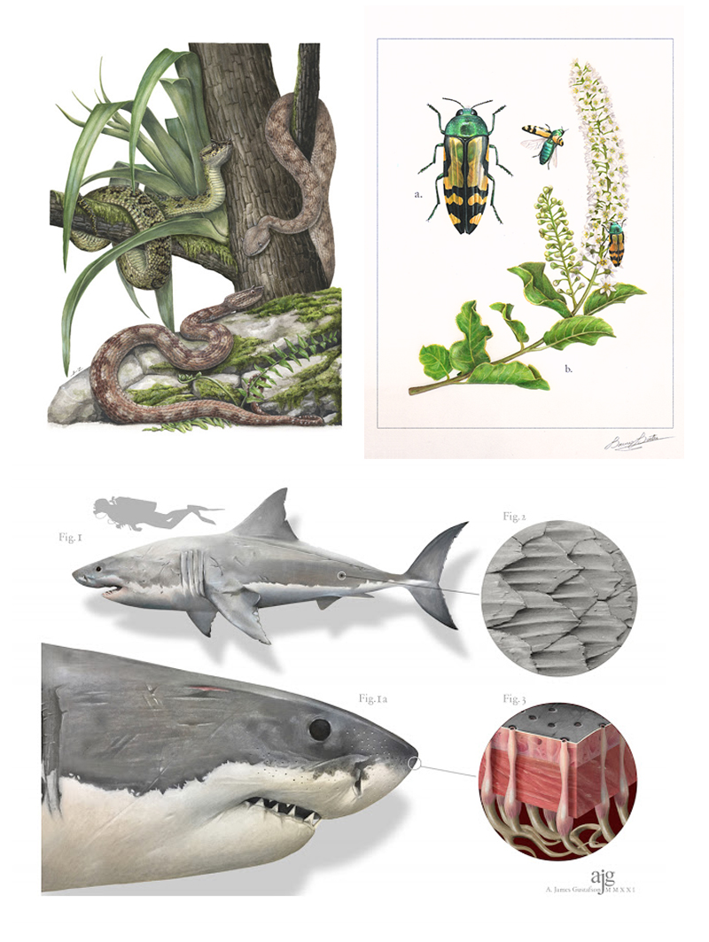 James Gustafson y Lilian Tendilla Núñez son las dos personas ganadoras de la octava edición del Premio Internacional de Ilustración Científica y Naturalista del proyecto Illustraciencia. Un jurado profesional formado por miembros del comité asesor de Illustraciencia, representantes del Museo Nacional de Ciencias Naturales (MNCN-CSIC) y de la Asociación Catalana de Comunicación Científica (ACCC) ha seleccionado como ganadoras, entre las 40 propuestas finalistas y las 600 presentadas, las obras More than jaws, de Gustafson, y Especies del género Ophryacus, de Tendilla, en la categoría científica y naturalista, respectivamente. Los autores de las obras ganadoras recibirán 600€ de premio.