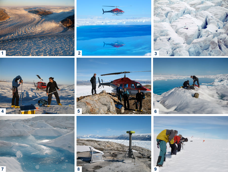 Los investigadores españoles, con los que colabora un equipo estadounidense y otro danés, llevan desde 2006 instalando una amplia red de receptores GPS en los glaciares Helheim y Kangerdlugssuaqd. Esta tecnología, desarrollada en el CSIC, es alimentada con energía solar y cuenta con un sistema de telecomunicaciones para transmitir los datos vía satélite y en tiempo real. Los trabajos científicos de 2010 han servido para instalar 12 nuevos GPS en el glaciar Helheim, para mantener la estación sísmica e instalar dos nuevas cámaras. Además, los científicos han situado dos prototipos de boya GPS en el Océano Ártico para estudiar el balance de masas del hielo marino.