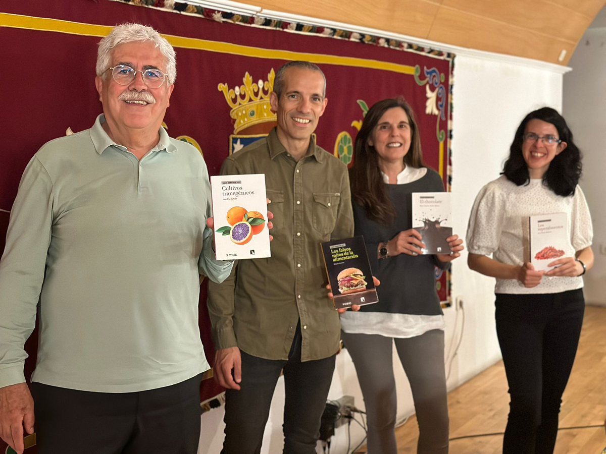 El club de lectura de cada distrito ha contado con veinte participantes que una vez al mes se han reunido para dialogar en torno a un libro de la colección ¿Qué sabemos de? (CSIC-Catarata) con su autor o autora y con personal investigador del ICTAN especialista en la materia. Se trata de los títulos Cultivos transgénicos, de José Pío Beltrán; Los falsos mitos de la alimentación, de Miguel Herrero; El chocolate, de María Ángeles Martín; y Los superalimentos, de Jara Pérez.