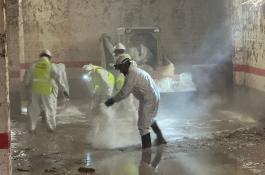 “Unas horas después de emplear el material espesante, el agua ha desaparecido y ahora el lodo ya se puede retirar con…