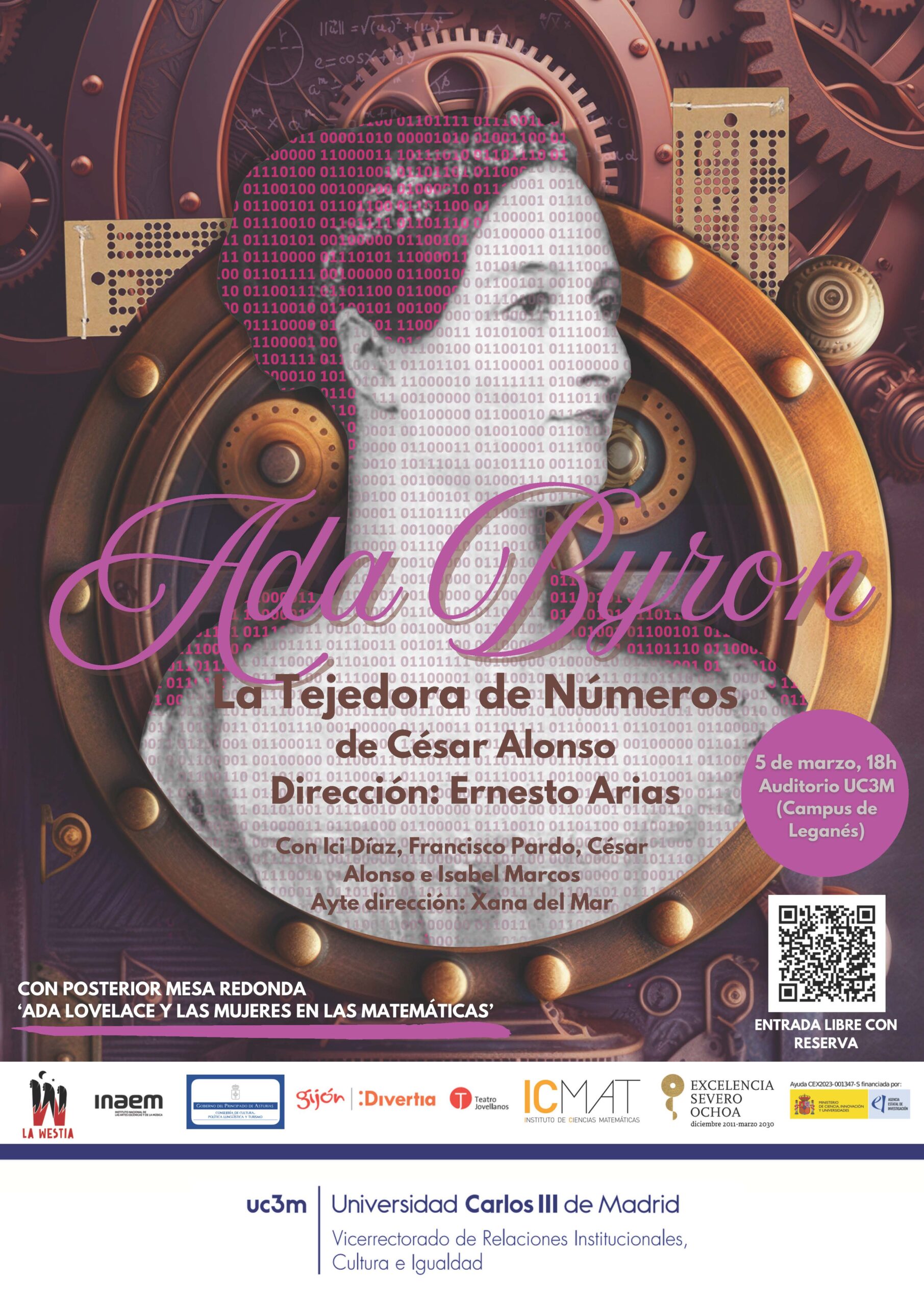 Con motivo de la conmemoración del 8 de marzo, Día Internacional de las Mujeres, y del 14 de marzo, Día Internacional de las Matemáticas, el ICMAT, centro mixto adscrito al CSOIC, y la Universidad Carlos III de Madrid (UC3M) organizan la representación de la obra Ada Byron: la tejedora de números, seguida de una mesa redonda sobre Ada Lovelace, matemática pionera, que será el punto de partida para reflexionar sobre la evolución de la situación de las mujeres en esta disciplina.