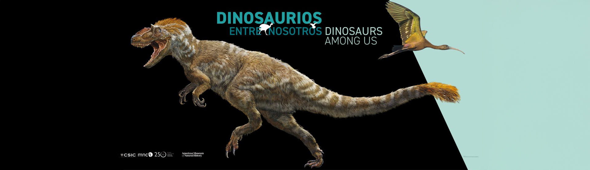 Dinosaurios entre nosotros es una exposición bilingüe (español-inglés) compuesta por paneles ilustrados, reproducciones, ejemplares y fósiles de las colecciones de Aves y Paleontología del Museo Nacional de Ciencias Naturales. Quienes la visiten podrán explorar y aprender sobre la evolución de las aves haciendo un recorrido a través de la fascinante historia de sus ancestros dinosaurios. Se trata de una propuesta del American Museum of Natural History de Nueva York y cuenta con la colaboración de instituciones de diversos países.