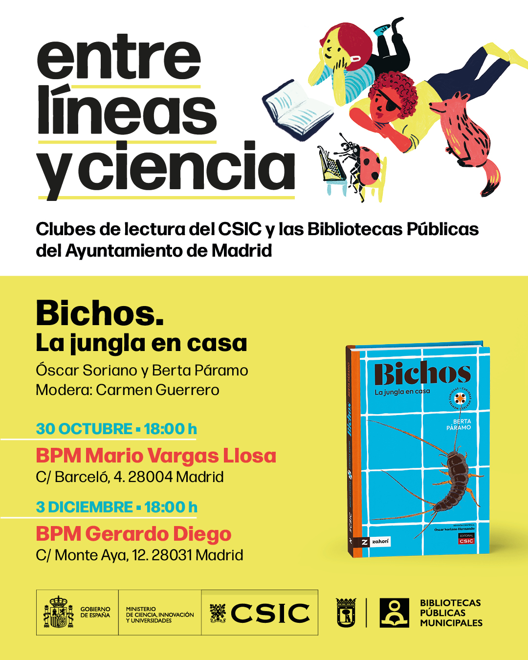 - 30 de octubre. Bichos, la jungla en casa. Berta Páramo, ilustradora, y Óscar Soriano, Museo Nacional de Ciencias Naturales.