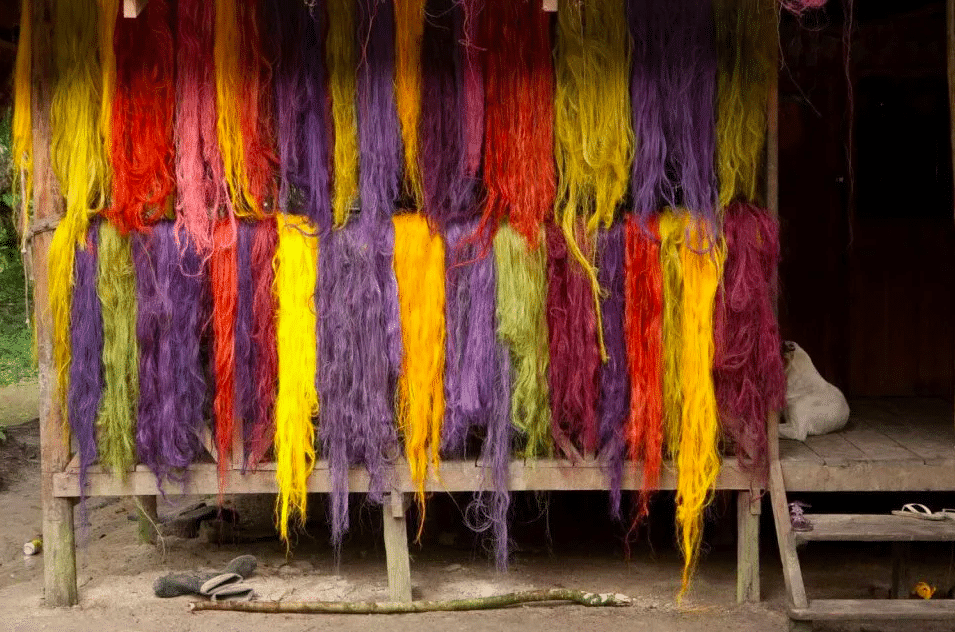 La muestra incluye papeles teñidos con estos pigmentos y evidencia el vínculo entre las plantas, el entorno y los procesos de teñido tradicionales. Además, la artista ha impulsado un bosque sostenible que garantiza la perpetuidad de las especies utilizadas.