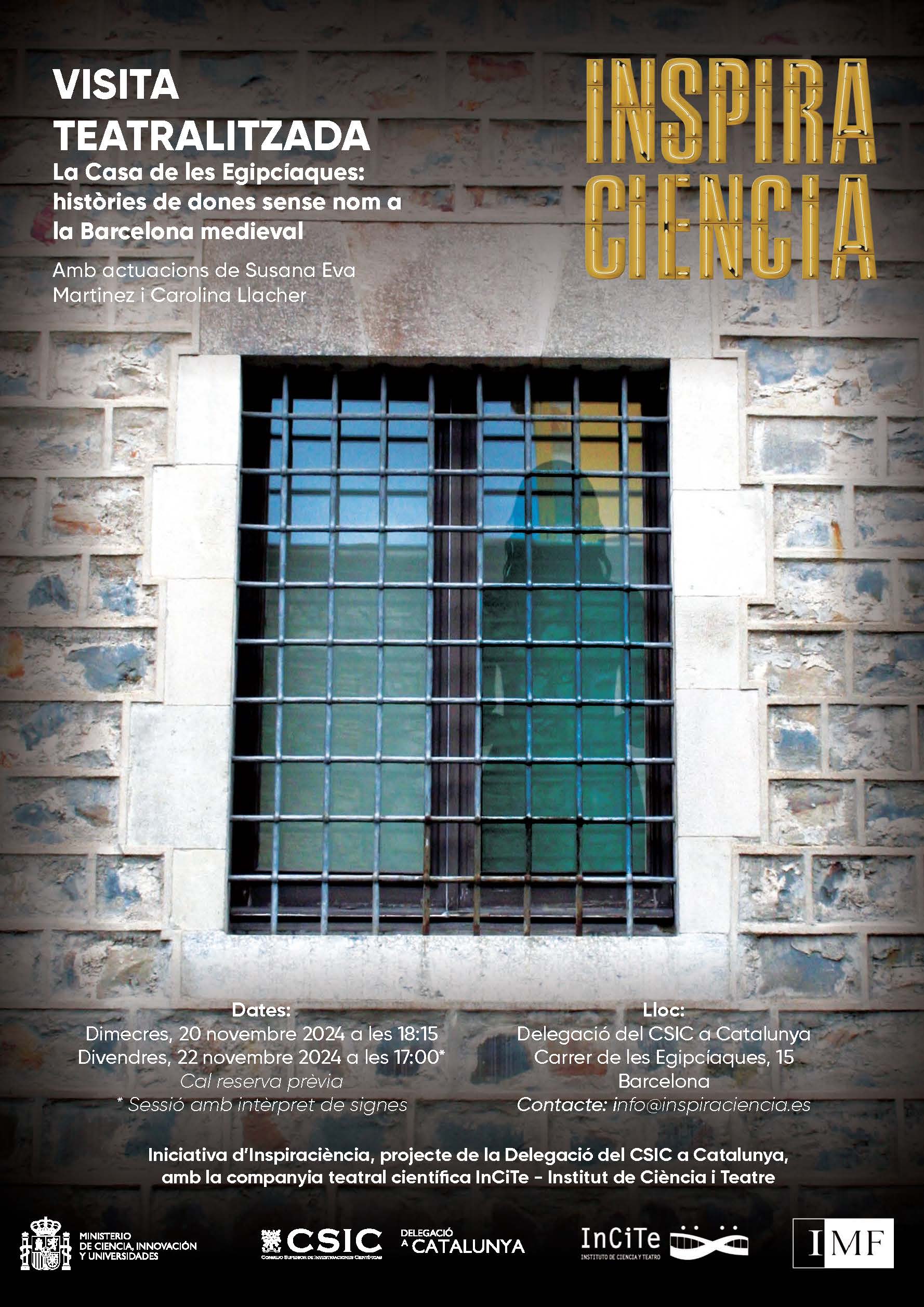 De la mano de personajes del pasado y a través de un relato lleno de misterio, se mostrará cómo era la vida en los siglos XIV y XV, sus secretos e historias de opresión hacia las mujeres. La actividad, Visita teatralizada. La Casa de les Egipcíaques: històries de dones sense nom a la Barcelona medieval, se ha creado en colaboración con la compañía de teatro científico Instituto de Ciencia y Teatro (InCiTe) y las actrices Susana Eva Martínez y Carolina Llacher. Habrá dos sesiones: el miércoles 20 de noviembre, a las 18:15, y el viernes 22, a las 17:00. La del viernes contará con intérprete en lengua de signos.
