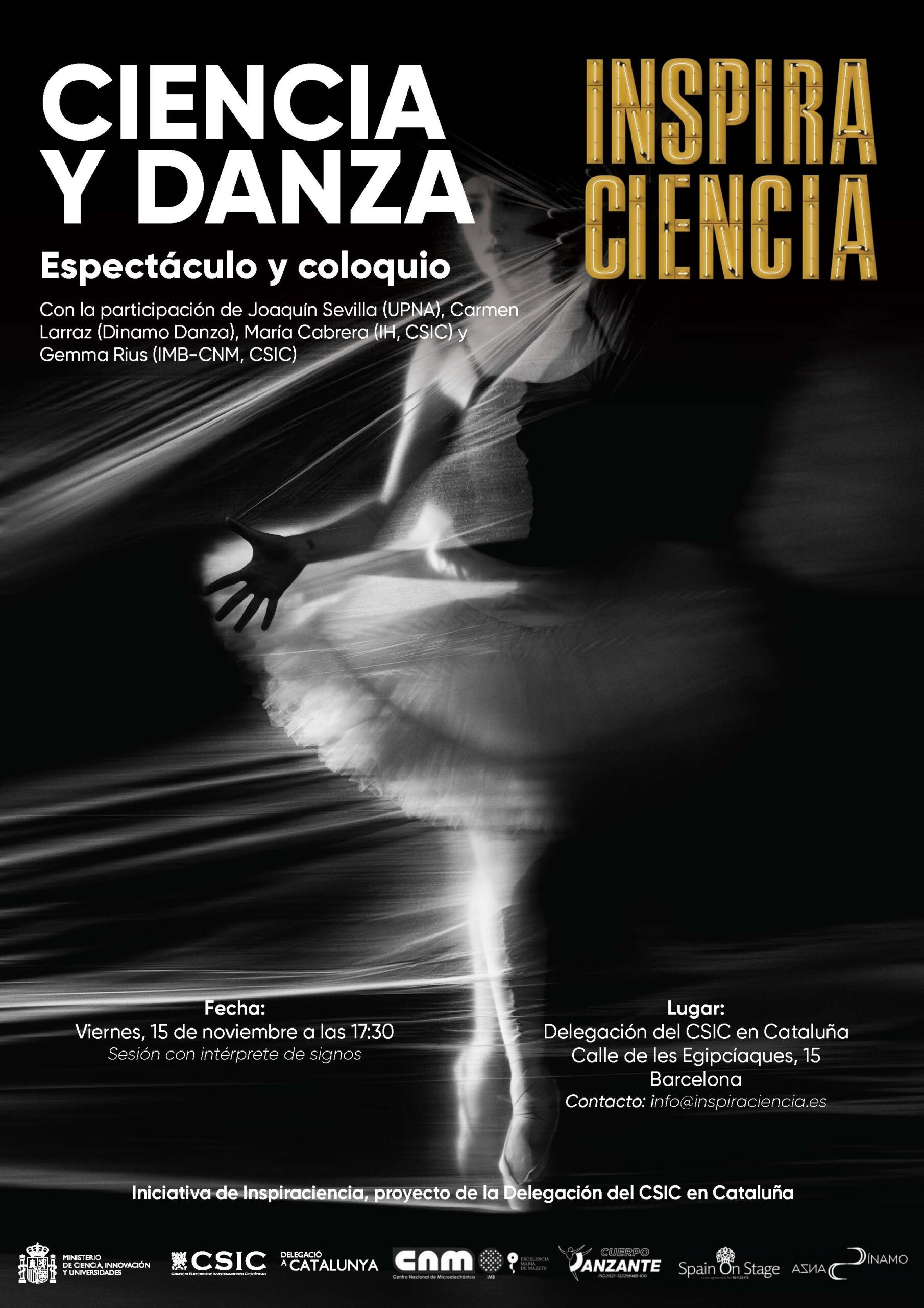 Cómo se han influido mutuamente ciencia y arte? Es la reflexión que Inspiraciencia plantea el viernes 15 de noviembre con el espectáculo Atardecer, con el físico y divulgador Joaquín Sevilla y la coreógrafa Carmen Larraz (Dinamo Danza). También habrá con un coloquio sobre las relaciones entre danza y ciencia, con la participación de la investigadora Gemma Rius (IMB-CNM, CSIC) y la bailarina e investigadora María Cabrera (CCHS, CSIC), quien, además, representará dos piezas de danza: Danza española n. 5, de Enrique Granados, y una reconstrucción de La Corrida de Antonia Mercé, la Argentina. La actividad se realizará en la Delegación del CSIC en Cataluña y contará con intérprete en lengua de signos.