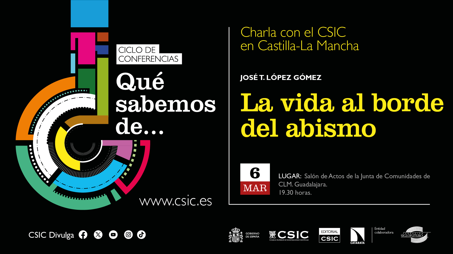 Esta conferencia forma parte del ciclo de conferencias ¿Qué sabemos de? organizado por la Delegación del CSIC en Castilla-La Mancha y la Fundación Siglo Futuro en el Salón de Actos de la Junta de Comunidades de CLM de Guadalajara a las 19:30 horas.