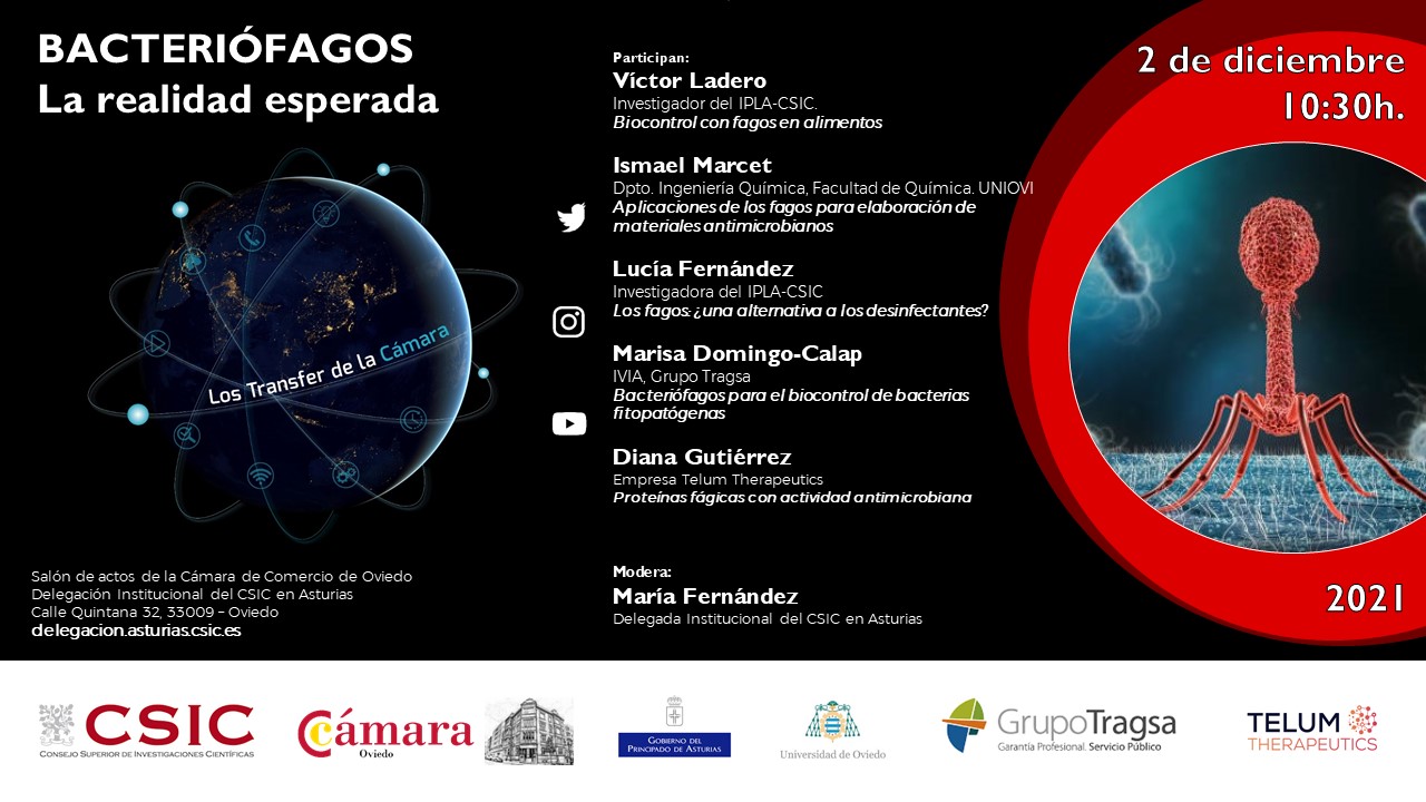 La Delegación Institucional del CSIC en Asturias y la Cámara Oficial de Comercio, Industria y Navegación de Oviedo convocan a un nuevo Transfer de la Cámara que aborda el tema de los virus bacteriófagos.