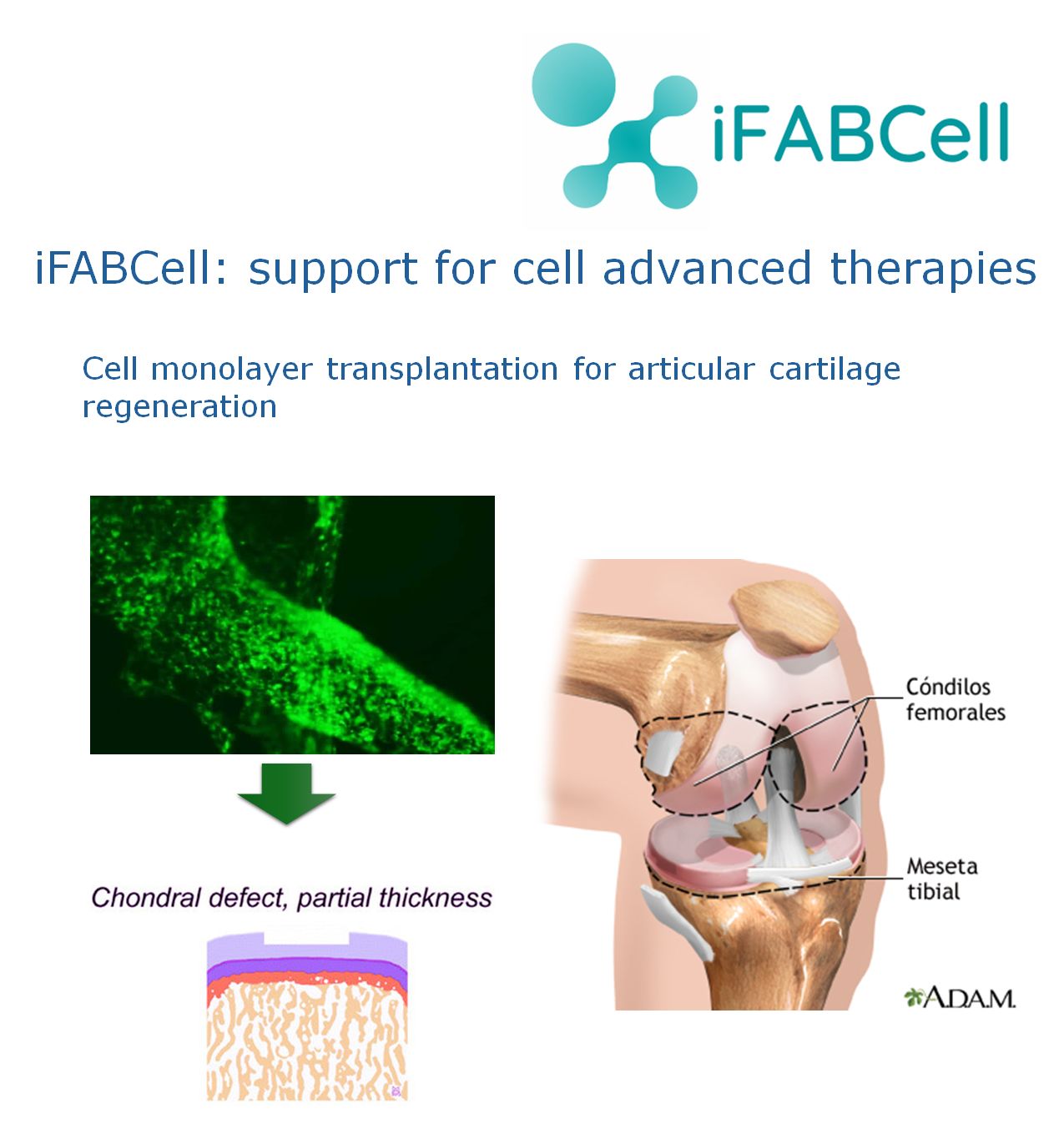 La tecnología iFABCell se basa en hidrogeles termosensibles capaces de permitir el cultivo celular en superficie, así como de facilitar su despegado y trasplante (por ejemplo, como monocapas) de cara a su uso en diversas aplicaciones terapéuticas avanzadas. Es muy atractiva en investigación o en disciplinas médicas centradas en la biología celular y molecular, como la manipulación de células madre o el estudio de proteínas de membrana, al igual que en procesos regenerativos estimulados por terapia de monocapas. De este modo, la tecnología ha sido validada en lesión articular en el tejido cartilaginoso en conejo en colaboración con el Hospital Clínico San Carlos.